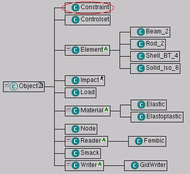 There can be several different types of constraints. Therefore the constraint class is a superclass and there are different subclasses. Examples include the standard BoundaryCondition and RigidBody.
