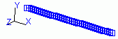 Mass Impacting Rod using Rod_2 elements. An elastic rod is fixed in one end and then struck in the other end by a moving mass. The mass is rigid and has an initial velocity of V0. The free end of the rod has the same initial velocity which is at the instant of impact. The relative motion of the mass and the rod end is the parameters of interest here. The rod is modeled using 20 ROD_2 elements and a free node representing the impacted mass. The contact is handled by Impact as default, extending from the free end by a radius, the same as the rod cross section radius. The timestep is reduced and fixed to prevent numerical instabilities. Two trackers are used to print the nodal displacements into files for viewing. |